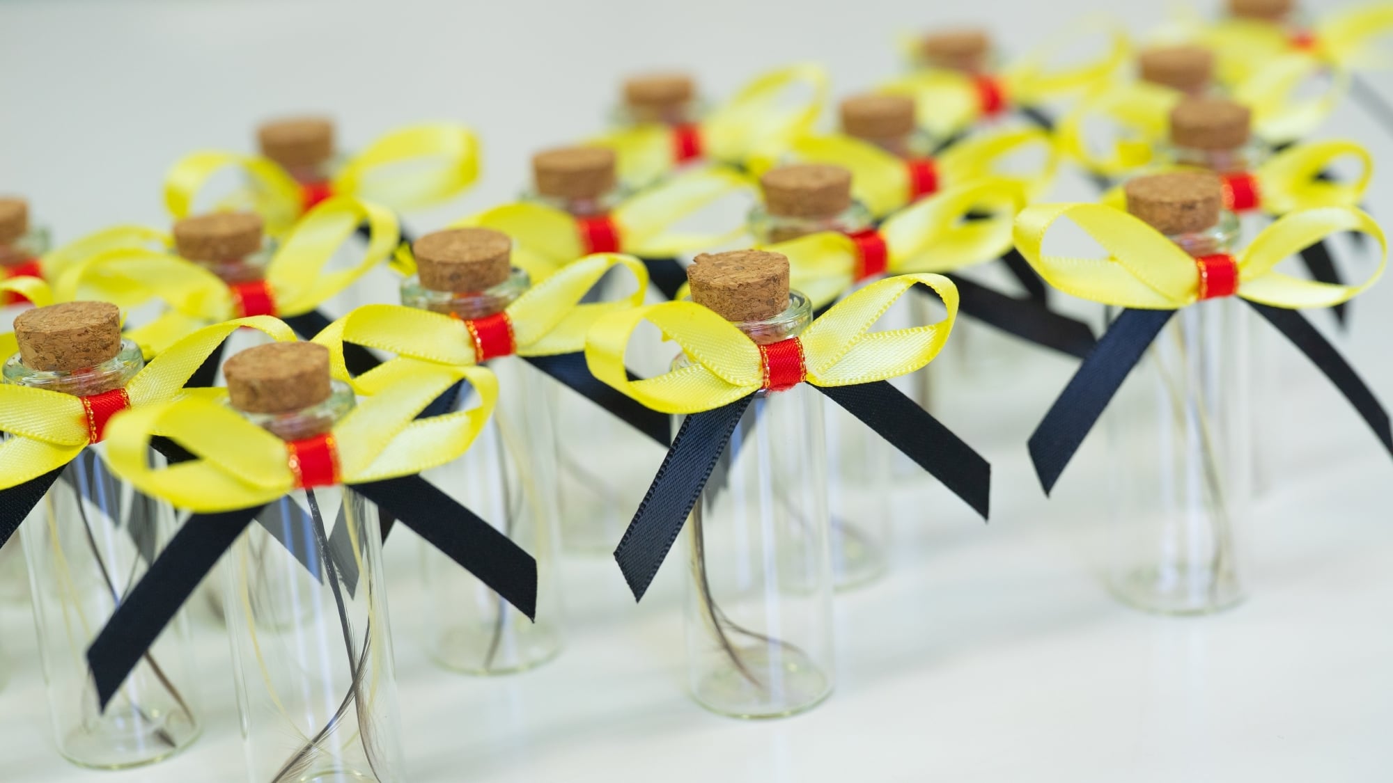 イワトビペンギンから取れる希少な冠羽根を小瓶に詰め、ミニチュアインテリアにしました。