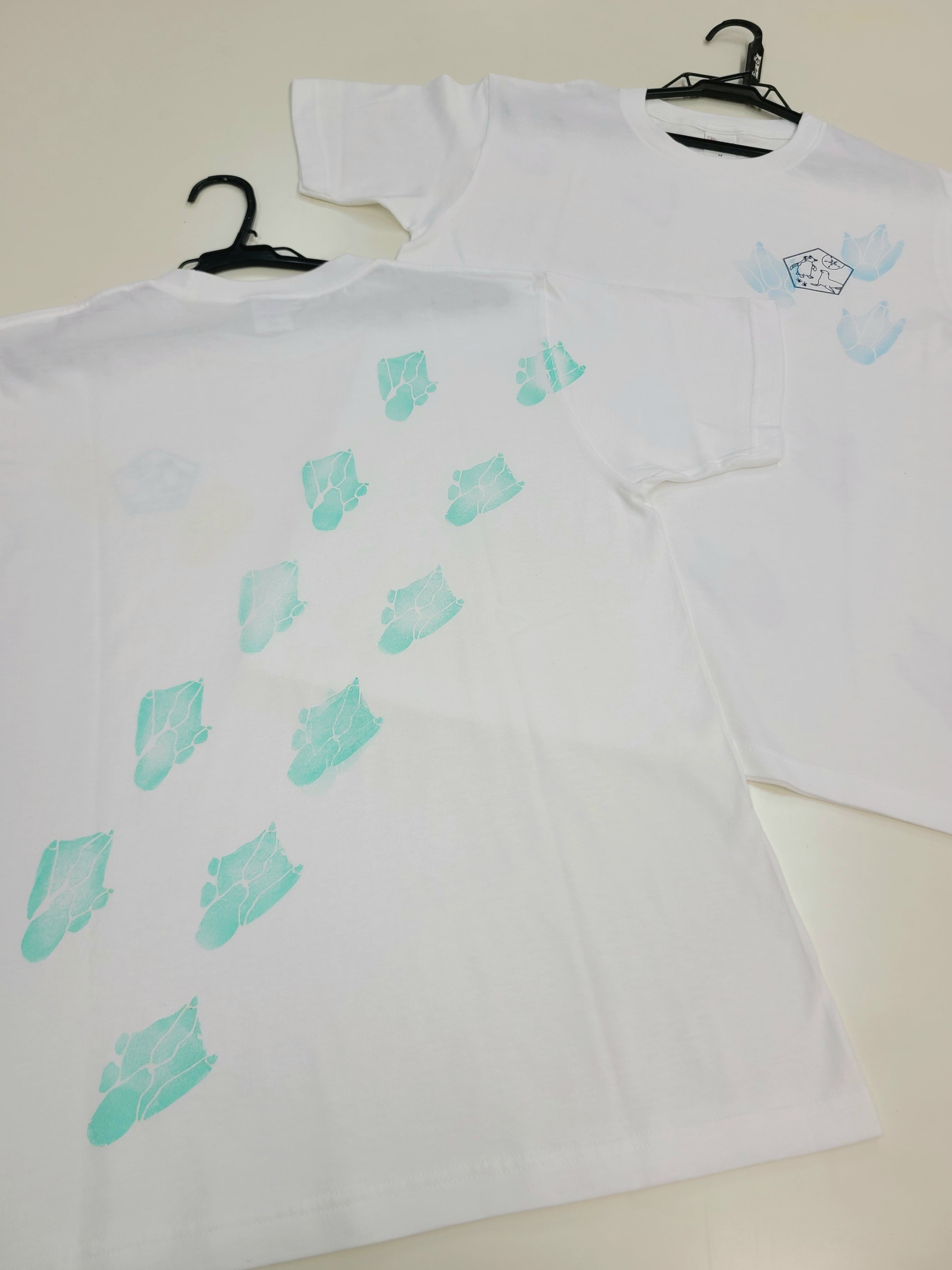 ペンギン達の足跡をリアルに形どった手作りスタンプでプリントしたTシャツです!